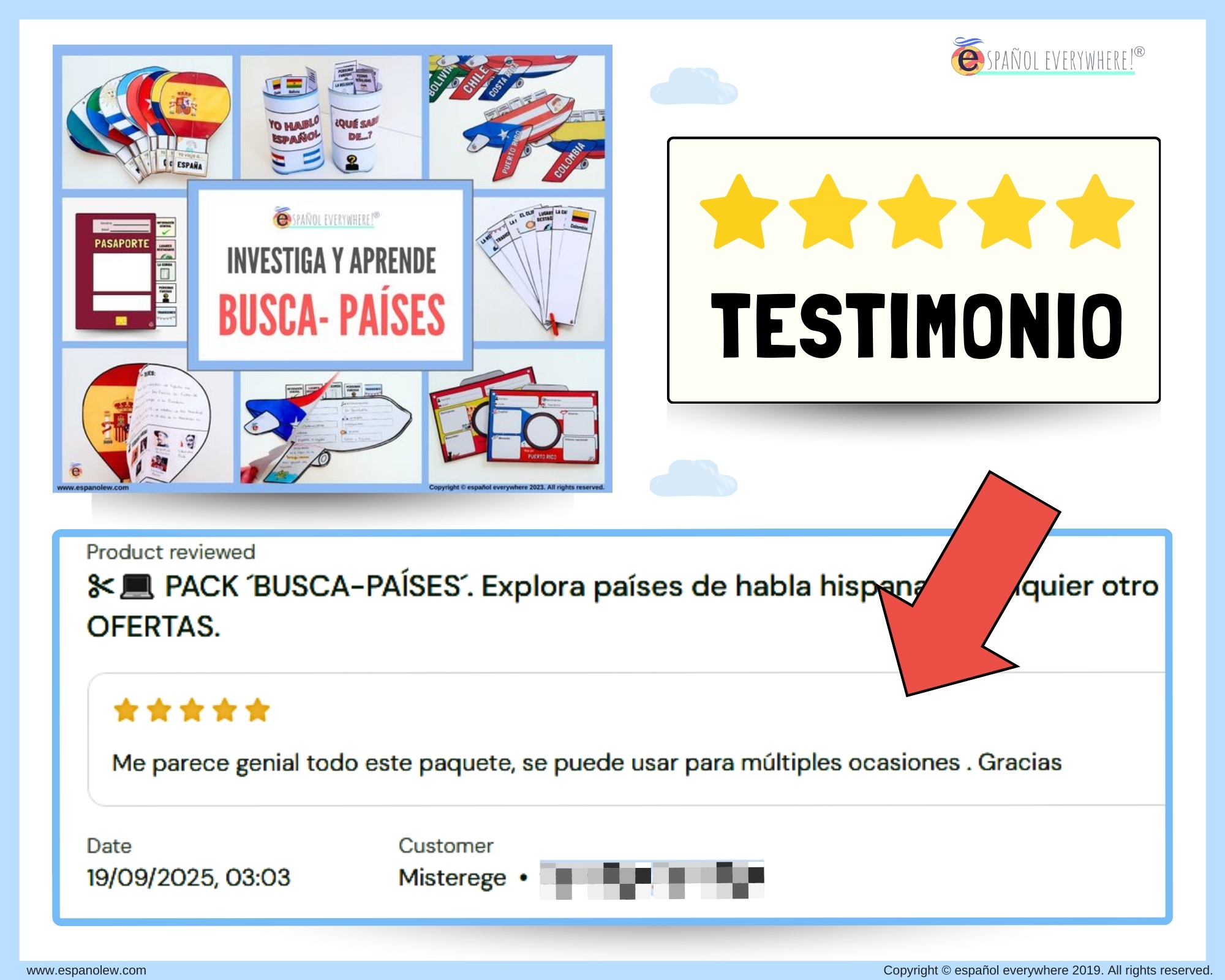 Cada vez sois más los que formáis parte de la familia Español Everywhere, y no puedo estar más agradecida. Me emociona saber que mis materiales llegan a tantos rincones del mundo y que valoráis toda la dedicación que hay detrás de cada uno. ¡Gracias infinitas!
