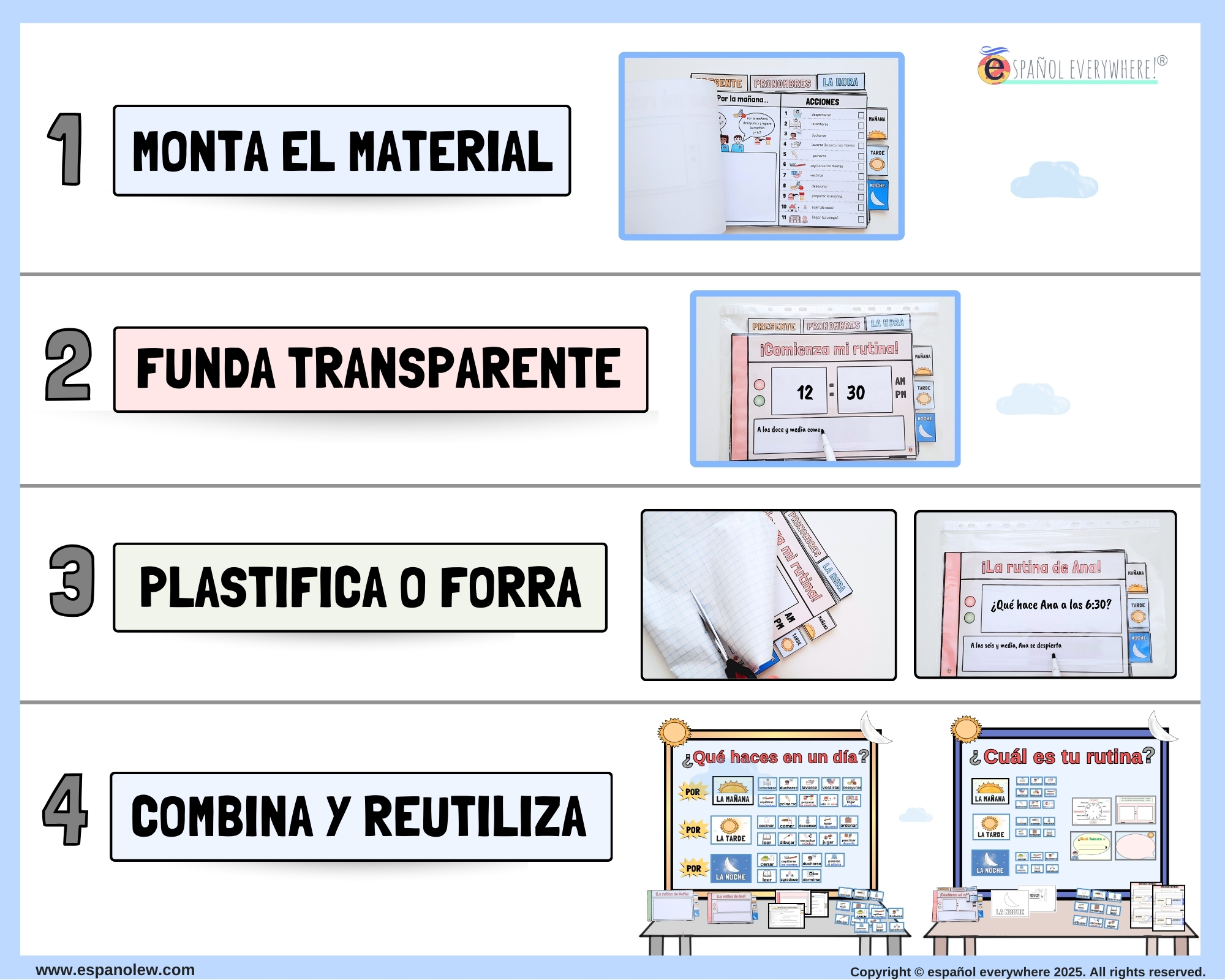 A continuación puedes ver cómo forrar el Despierta-Rutinas y usarlo de distintas maneras: como hoja de respuesta, para escribir mensajes, proponer retos o crear rincones de aprendizaje.